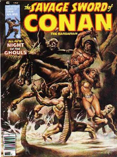 It could be my first Conan wasn't the comic book but another of Marvel's Black & White Magazines The Savage Sword of Conan. Like Dracula Lives, I was attracted to these productions and bought other Marvel Black and Whites like The Rampaging Hulk and Vampire Tales.